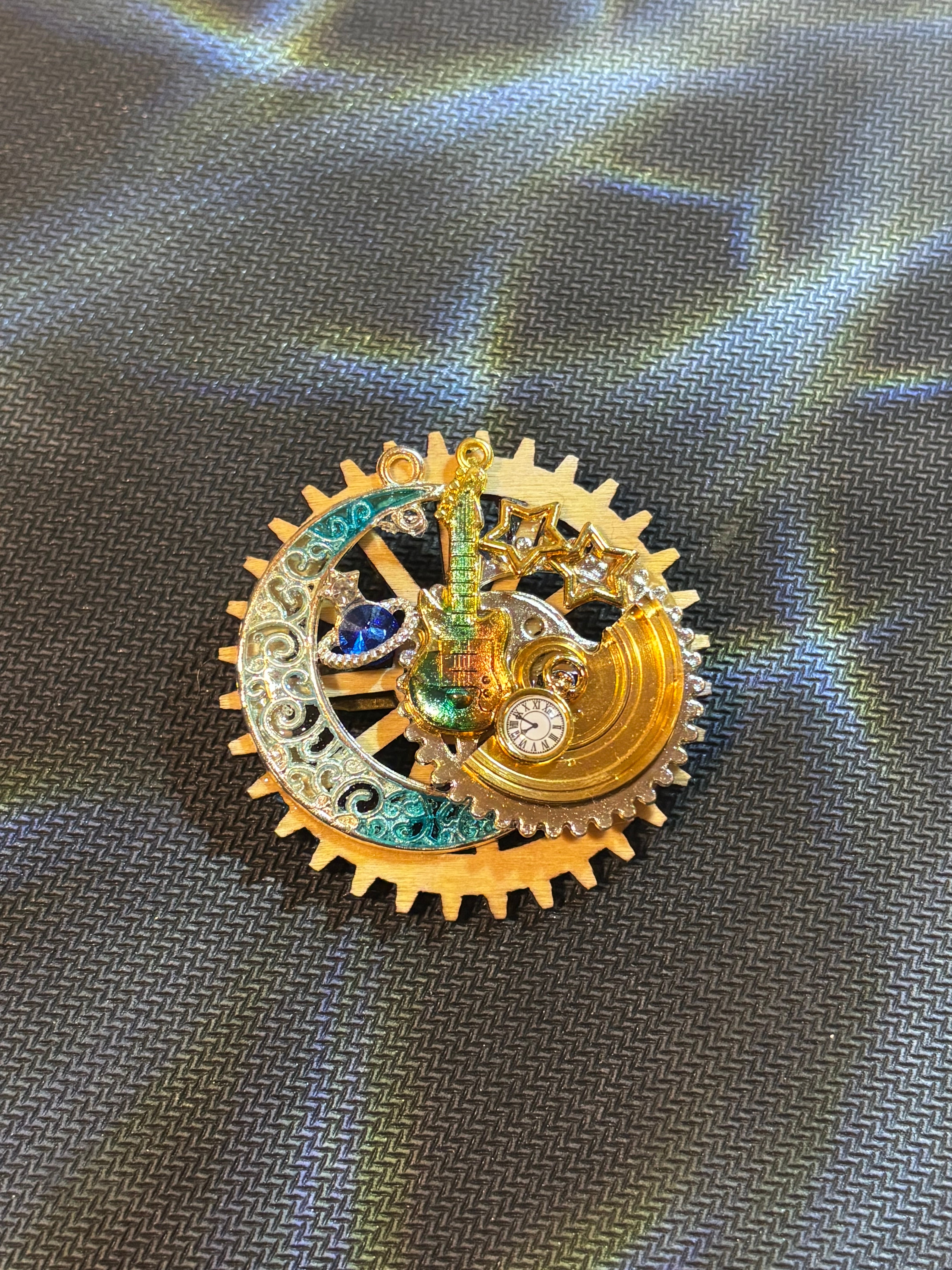 宇宙と月の時のギターのブローチ
