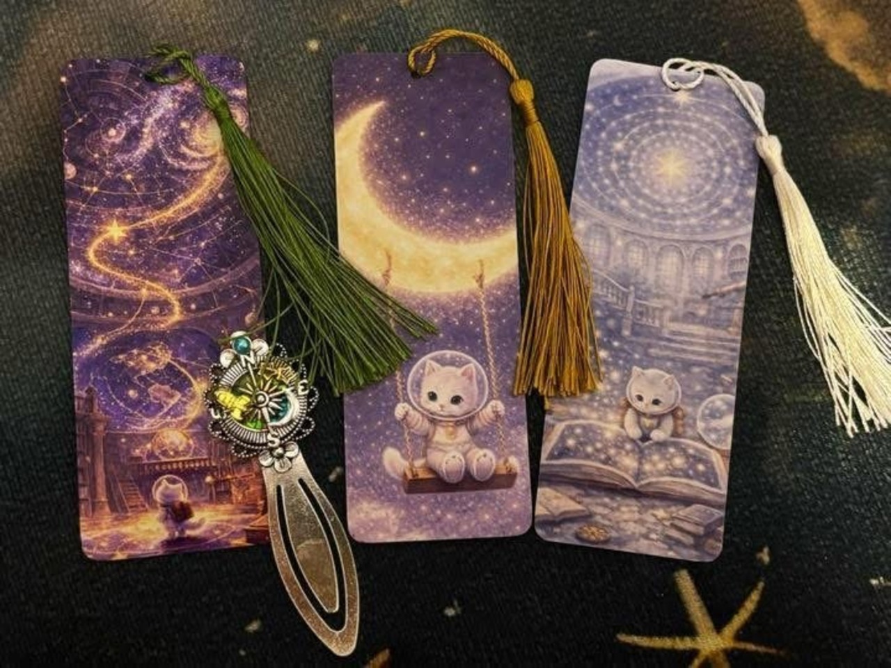 しおりセットB 星の航路 羅針盤or月のメタルブックマーク付き 【宇宙ねこと星の航路】